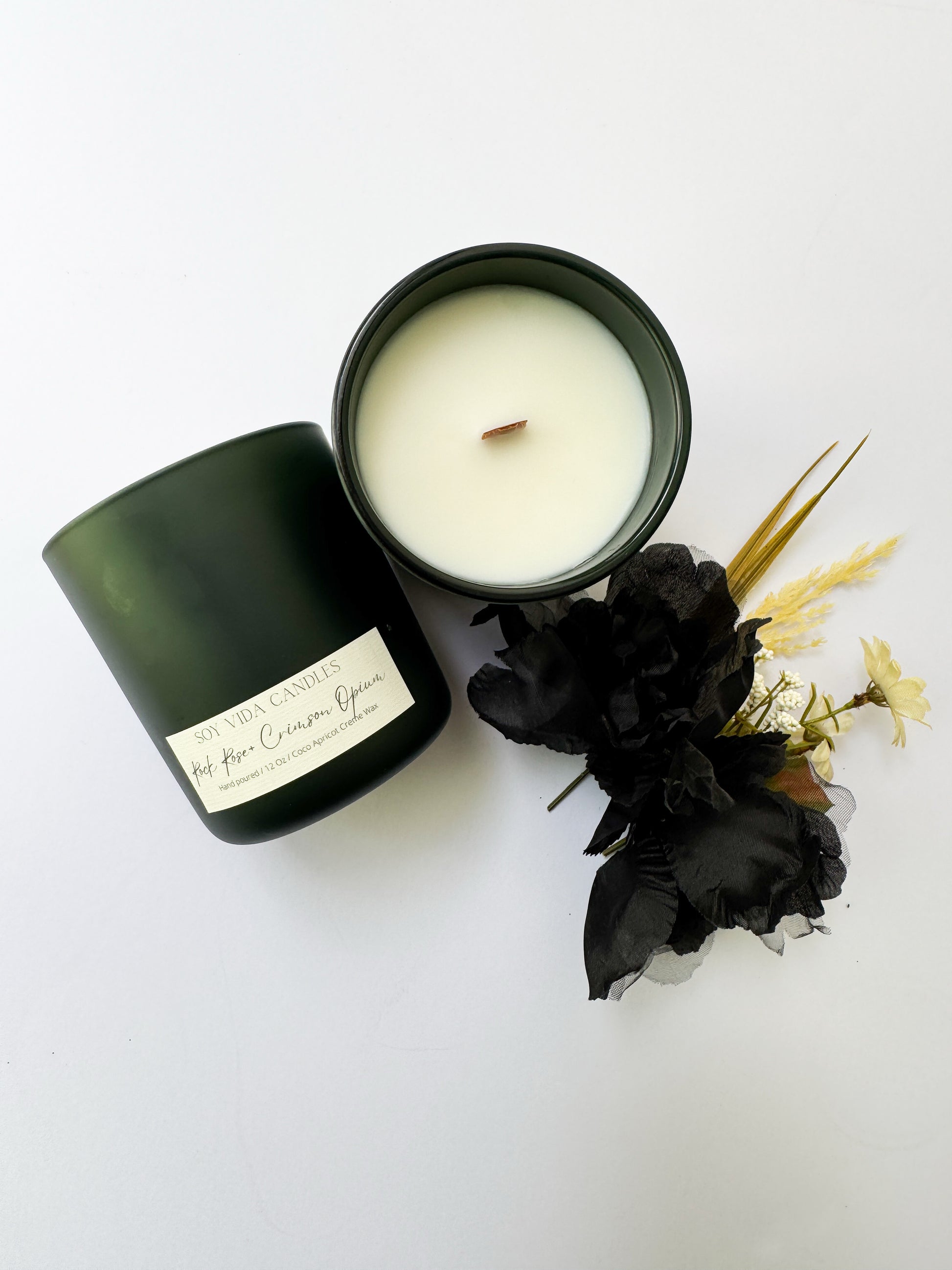 Rock Rose & Crimson Opium is a warm, mysterious blend of bergamot, juniper, and velvety florals wrapped in cinnamon, smoky labdanum, and creamy vanilla. Deeply sensual, it’s the perfect scent for crisp autumn nights.